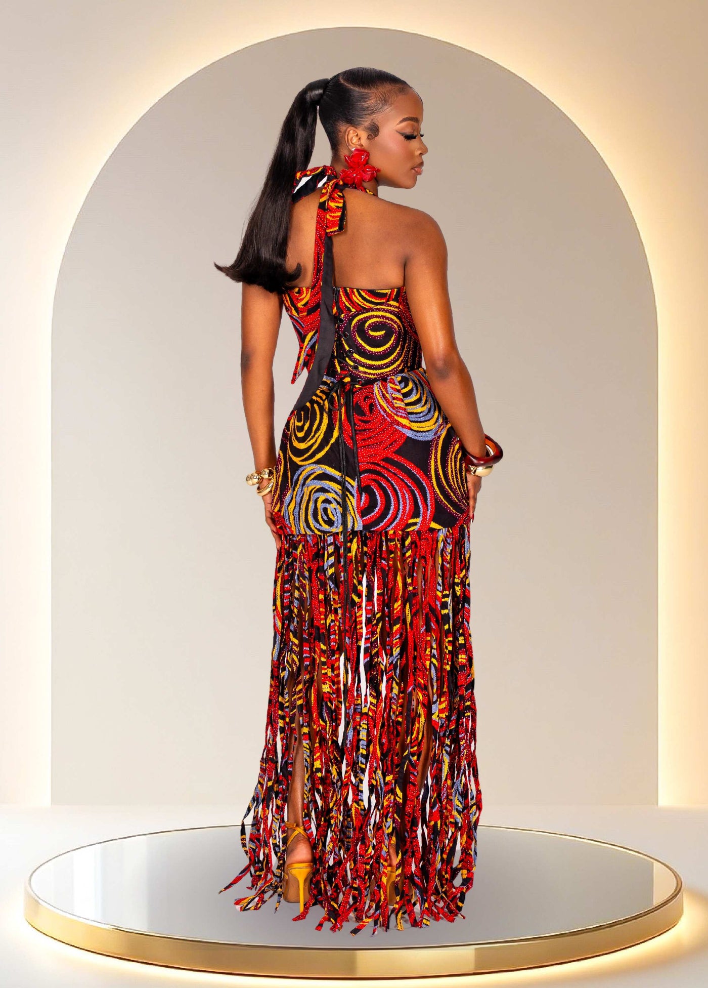 Soraya awaits you in your closet, impossible to ignore.Sculpted at the waist with a bold, blunt flare, the A-line mini makes a statement with every step. The removable lace-up corset shapes every curve, creating a snatched waist so effortlessly it feels like it’s always been missing—"excuse me miss, where is your waist?" Long tassels sway with each step, bold but removable, letting you decide how much attention to command.