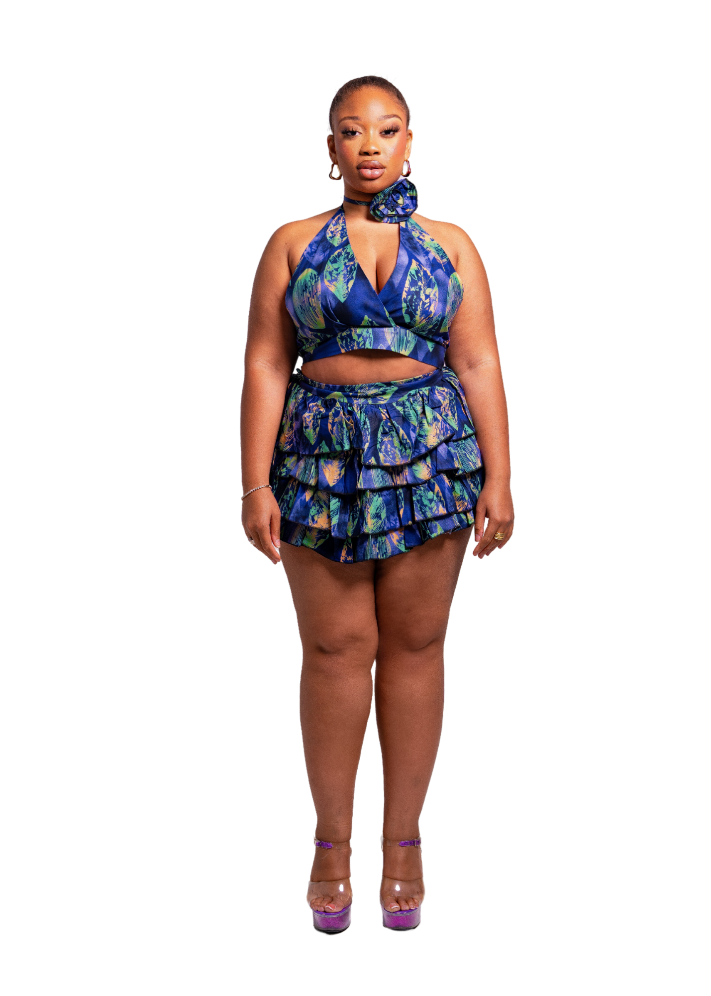 Playful halter top with long arms that can be tied in an infinite number of ways. Model is wearing a L top (height 5'4)